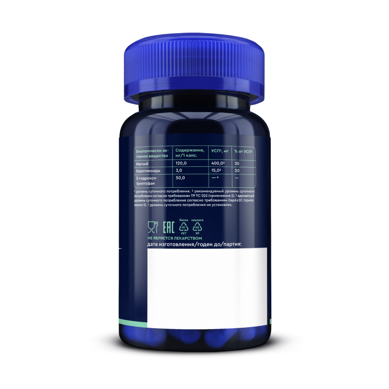 - 5-гидрокситриптофан (5-НТР) (из экстракта гриффонии) — 50 мг ;